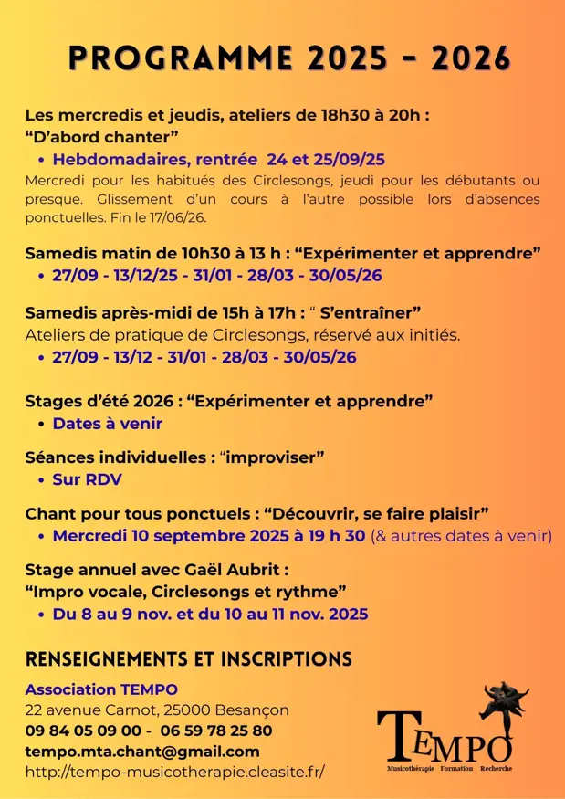 · Par mail ou téléphone à l’association Tempo : tempo.mta.chant@gmail.com –